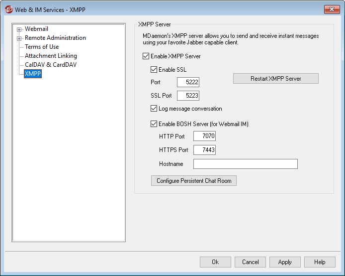 Click this option to enable the BOSH server, allowing instant messaging within MDaemon Webmail.