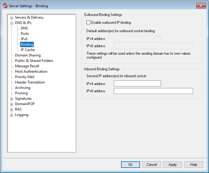 Use this option if you wish to designate a second set of IP addresses for inbound socket binding.