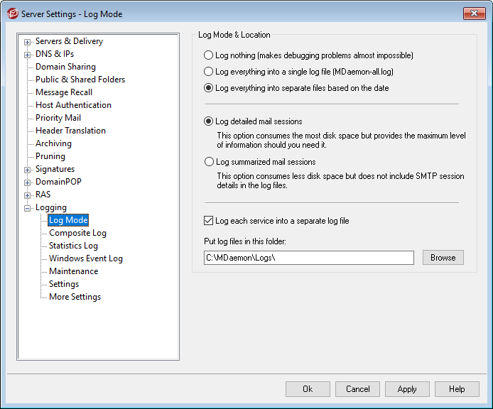 Choose this option if you wish to log everything into a single, separate file named MDaemon-all.log.