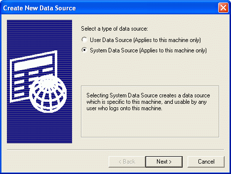 | 2. | Click New DSN to open the Select Data Source dialog. |