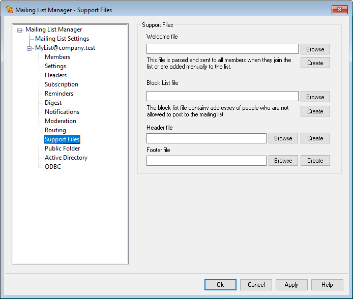 The contents of the files specified here will be used as the header and/or footer file for list messages.