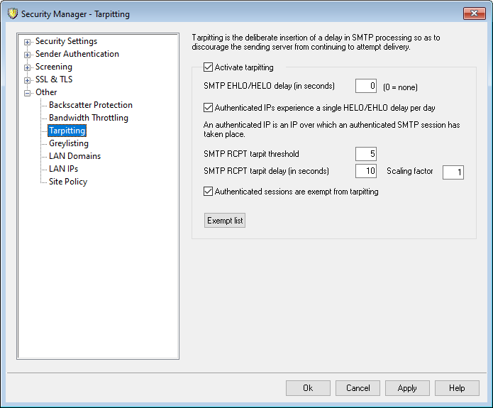 Click this checkbox if you want senders who authenticate their mail session to be exempt from Tarpitting.