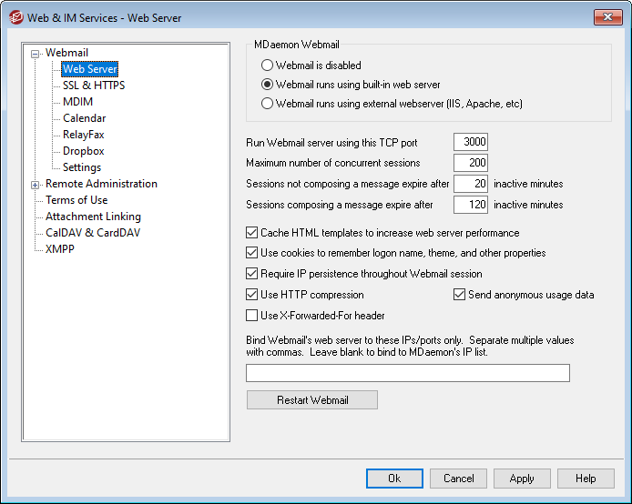 Bind Webmail's web server to these IPs/ports only